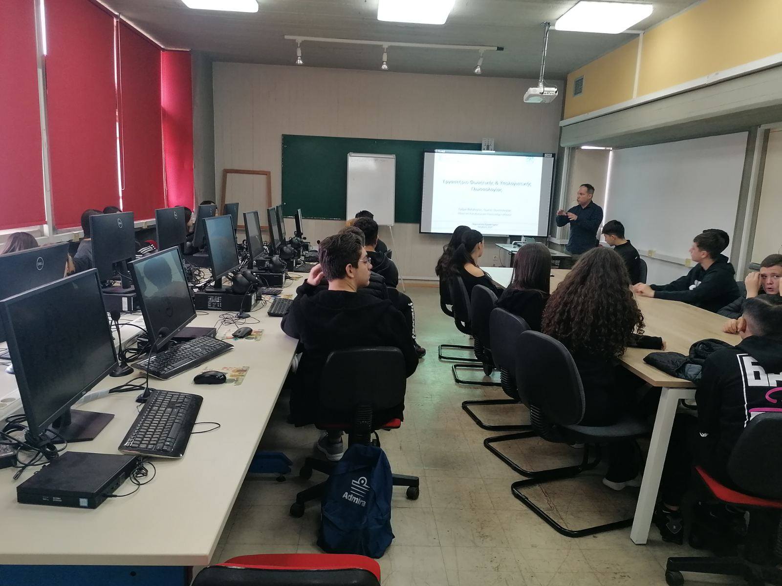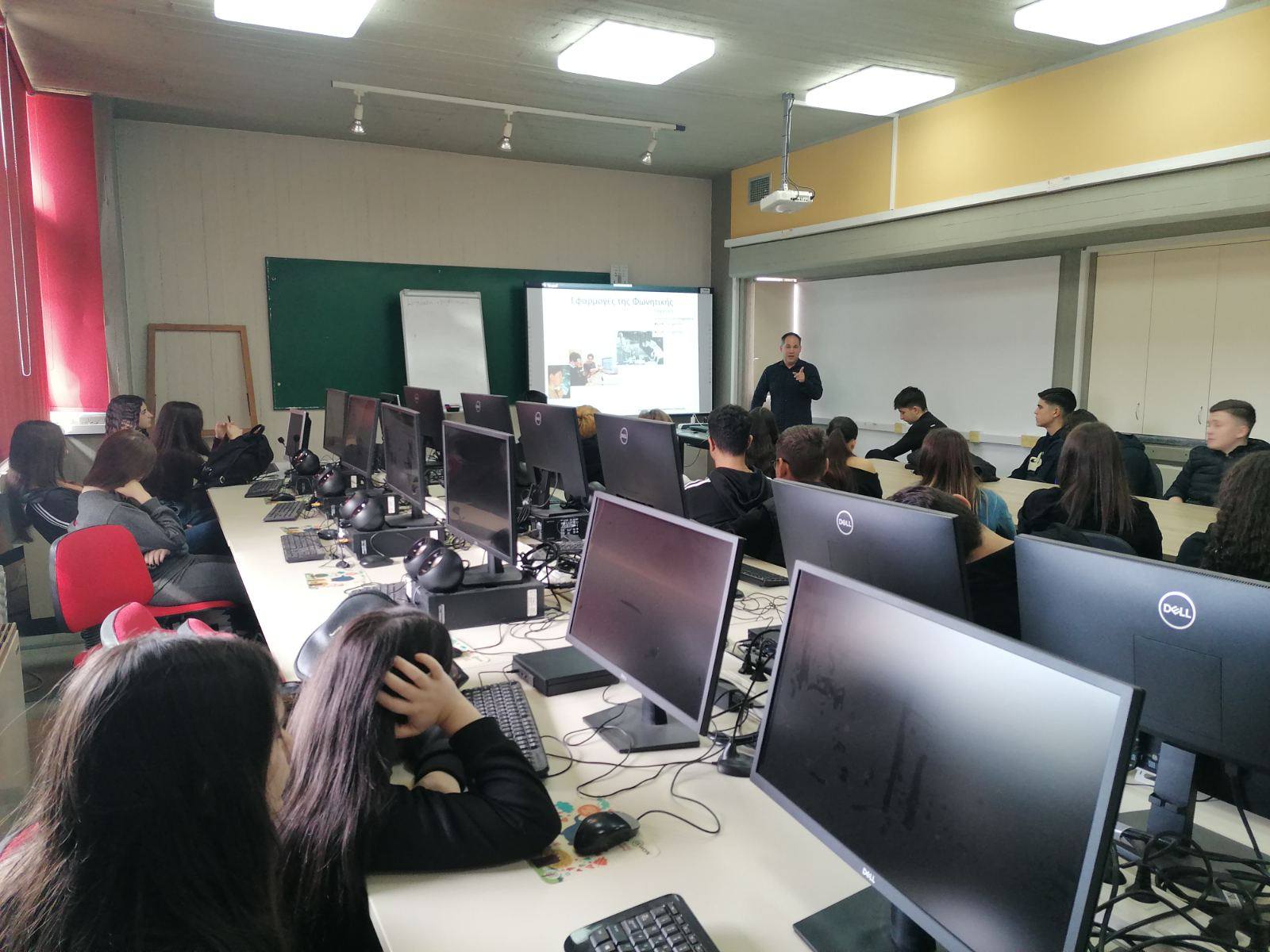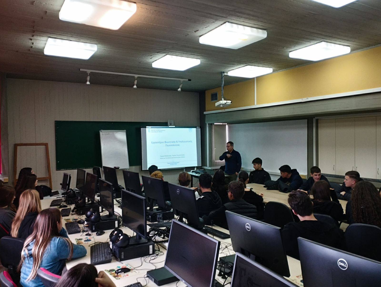 Στο πλαίσιο του προγράμματος του Επαγγελματικού Προσανατολισμού, οι μαθητές της Α΄ Λυκείου πραγματοποίησαν εκπαιδευτική επίσκεψη στην Φιλοσοφική Σχολή του Πανεπιστημίου Αθηνών. Εκεί γνώρισαν Καθηγητές του γλωσσολογικού τομέα του Τμήματος Φιλολογίας, οι οποίοι τους έδωσαν την ξεχωριστή ευκαιρία συμμετοχής σε πειράματα των εργαστηρίων τους και επαφής με τους συνεχώς εξελισσόμενους τομείς της Ψυχογλωσσολογίας, της Νευρογλωσσολογίας, της Φωνητικής και της Υπολογιστικής Γλωσσολογίας. Οι μαθητές μας, με την καθοδήγηση των ειδικών, διαπίστωσαν βιωματικά τον διεπιστημονικό χαρακτήρα αλλά και την βαρυσήμαντη συμβολή των πεδίων αυτών στη διαρκώς μεταβαλλόμενη καθημερινότητά μας, λαμβάνοντας παράλληλα ανεκτίμητα ερεθίσματα για την επιλογή του προσανατολισμού τους