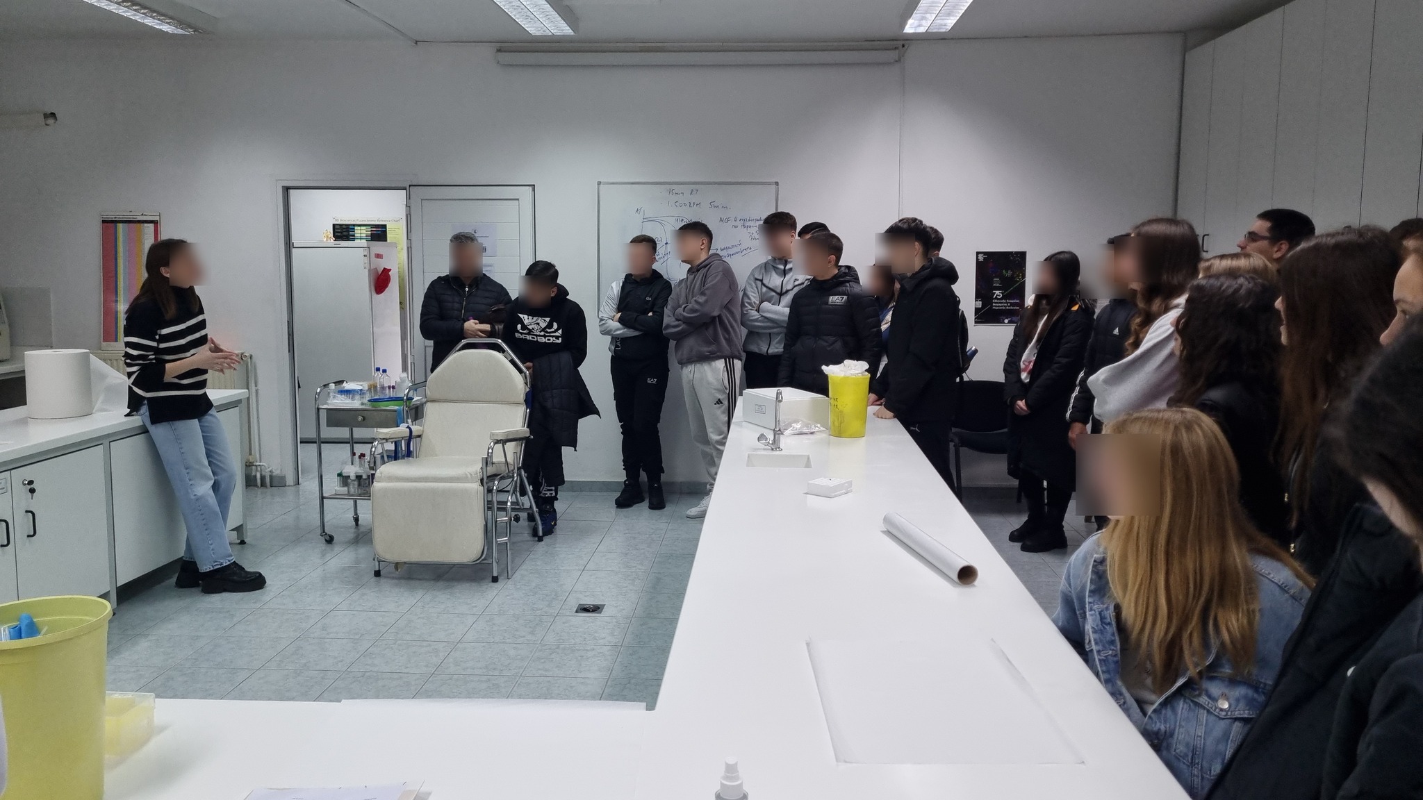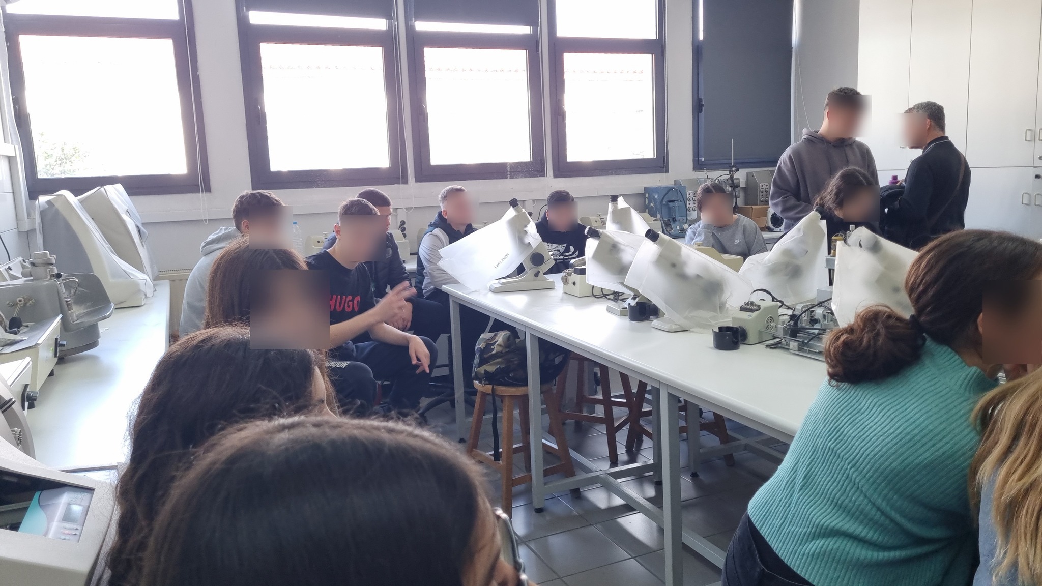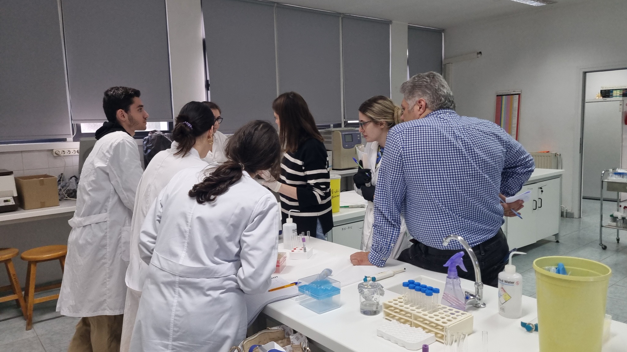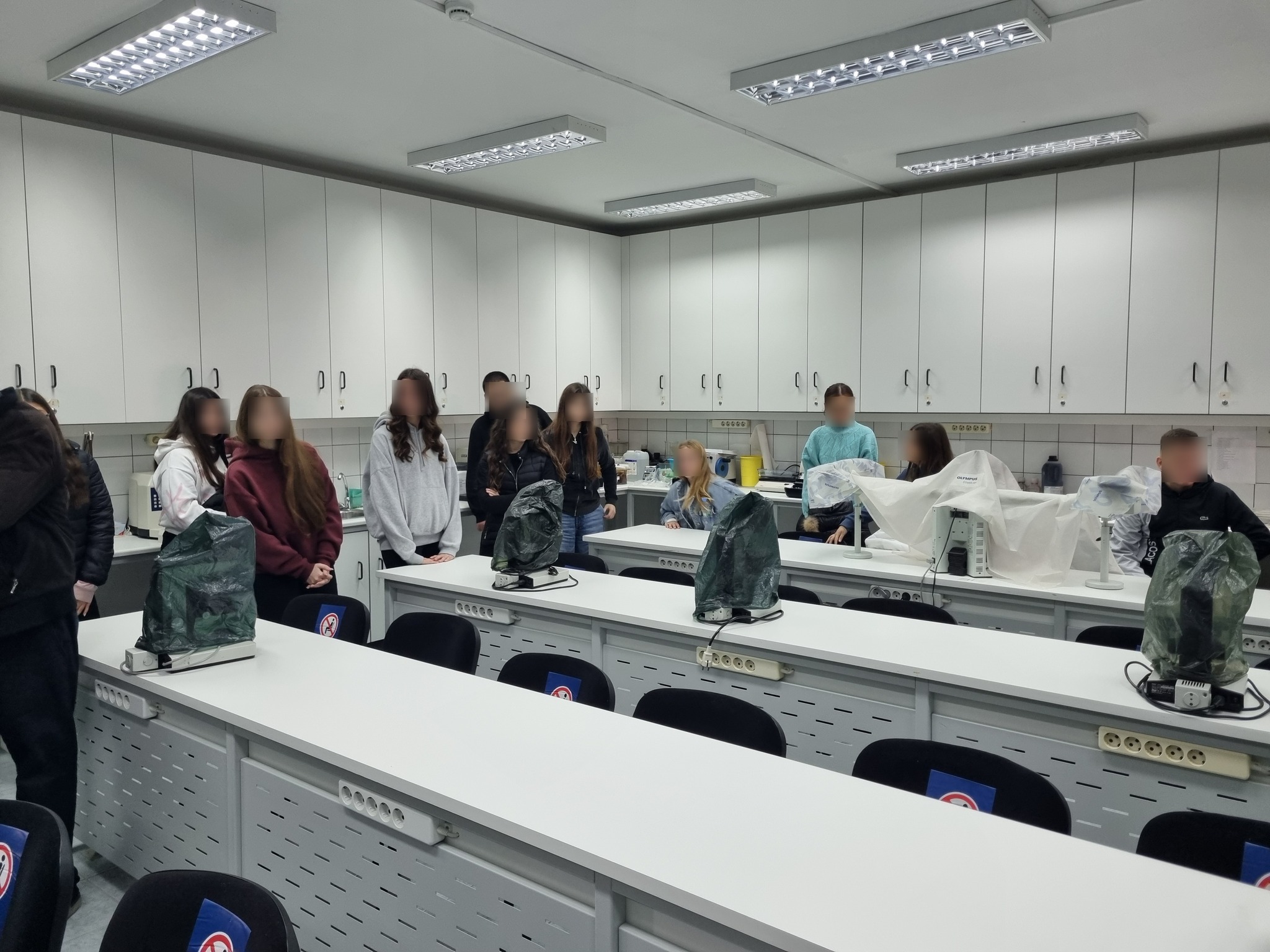 Στα Εργαστήρια Βιοϊατρικών Επιστημών, οι μαθητές ξεναγήθηκαν στα εργαστήρια Μικροβιολογίας, Αιματολογίας,Κλινικής Χημείας και Οπτικής, παρακολουθώντας πραγματικές διαδικασίες ανάλυσης δειγμάτων και μαθαίνοντας για τις σύγχρονες μεθοδολογίες της εργαστηριακής πράξης.