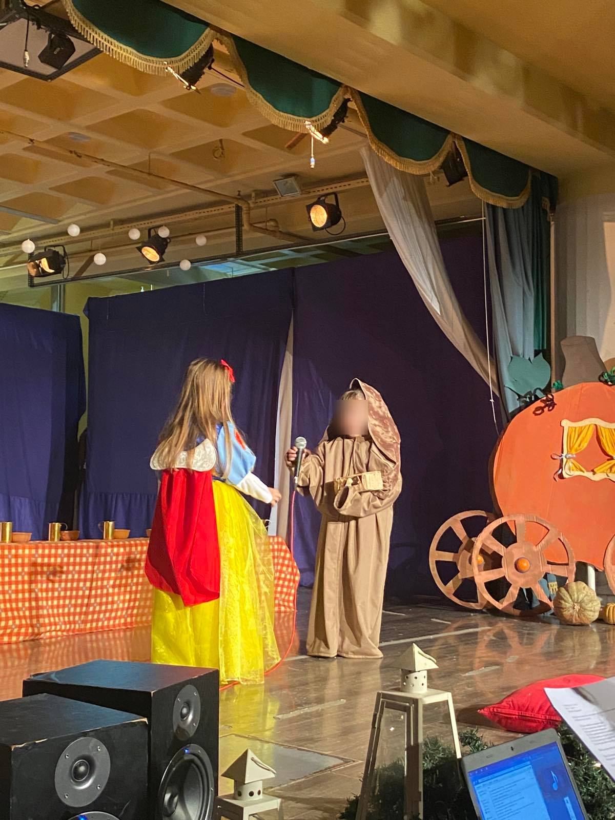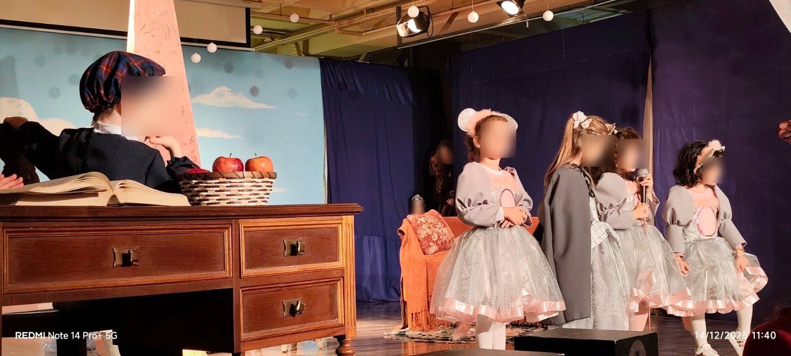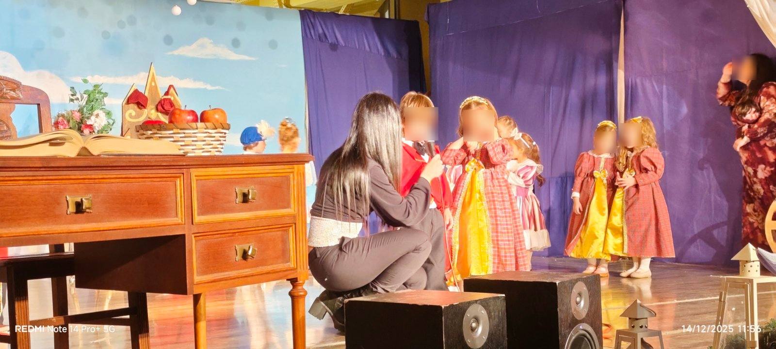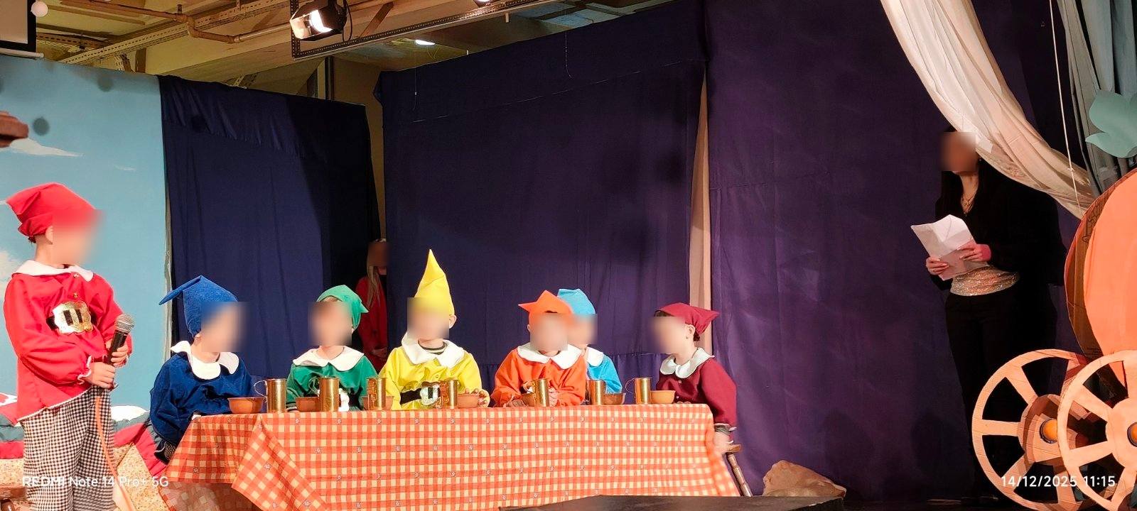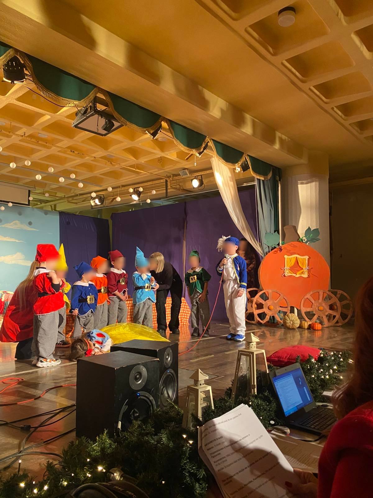 Οι μικροί μας πρωταγωνιστές με κέφι, φαντασία και αθωότητα ζωντάνεψαν τους παραμυθένιους ήρωες των αγαπημένων παραμυθιών των Αδερφών Γκριμ και μας ταξίδεψαν σ’ ένα όμορφο κόσμο αξιών, γεμίζοντας τη σκηνή χρώματα, μουσική και χαρούμενες παιδικές φωνές, προοιμιάζοντας τη χαρούμενη χριστουγεννιάτικη ατμόσφαιρα του Δωδεκαημέρου.
