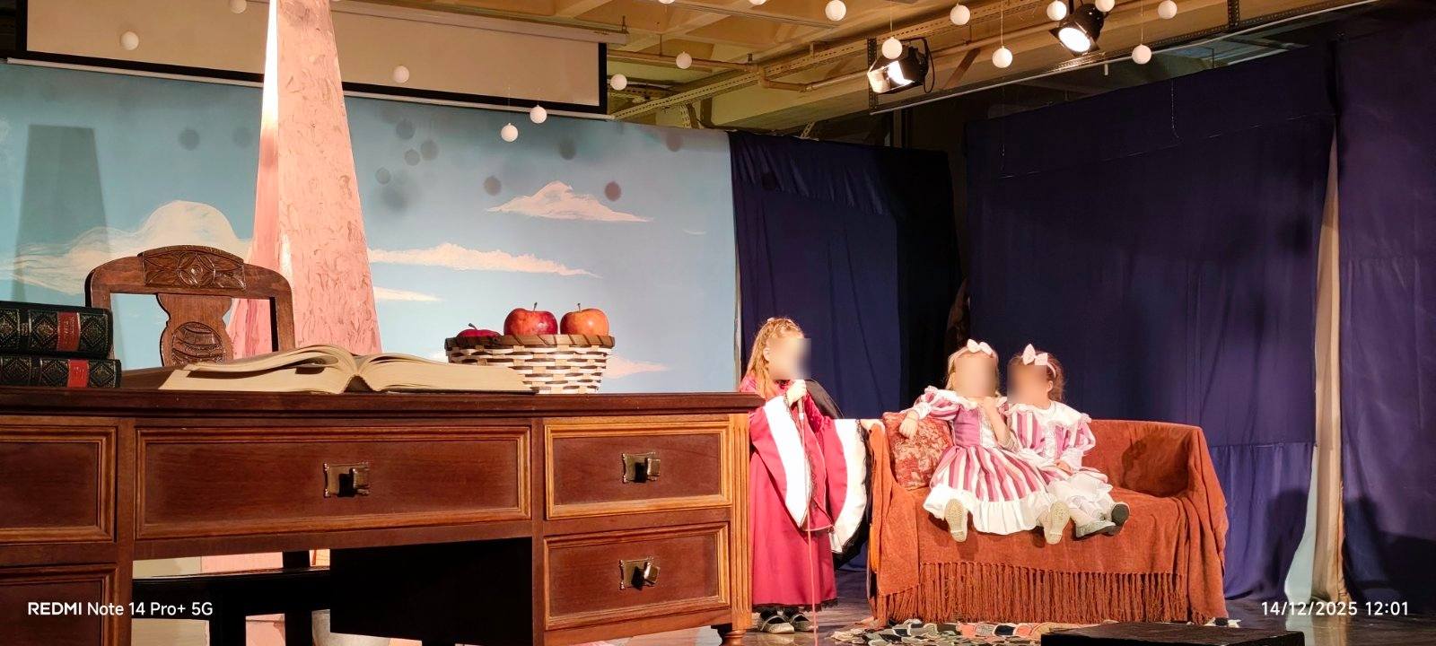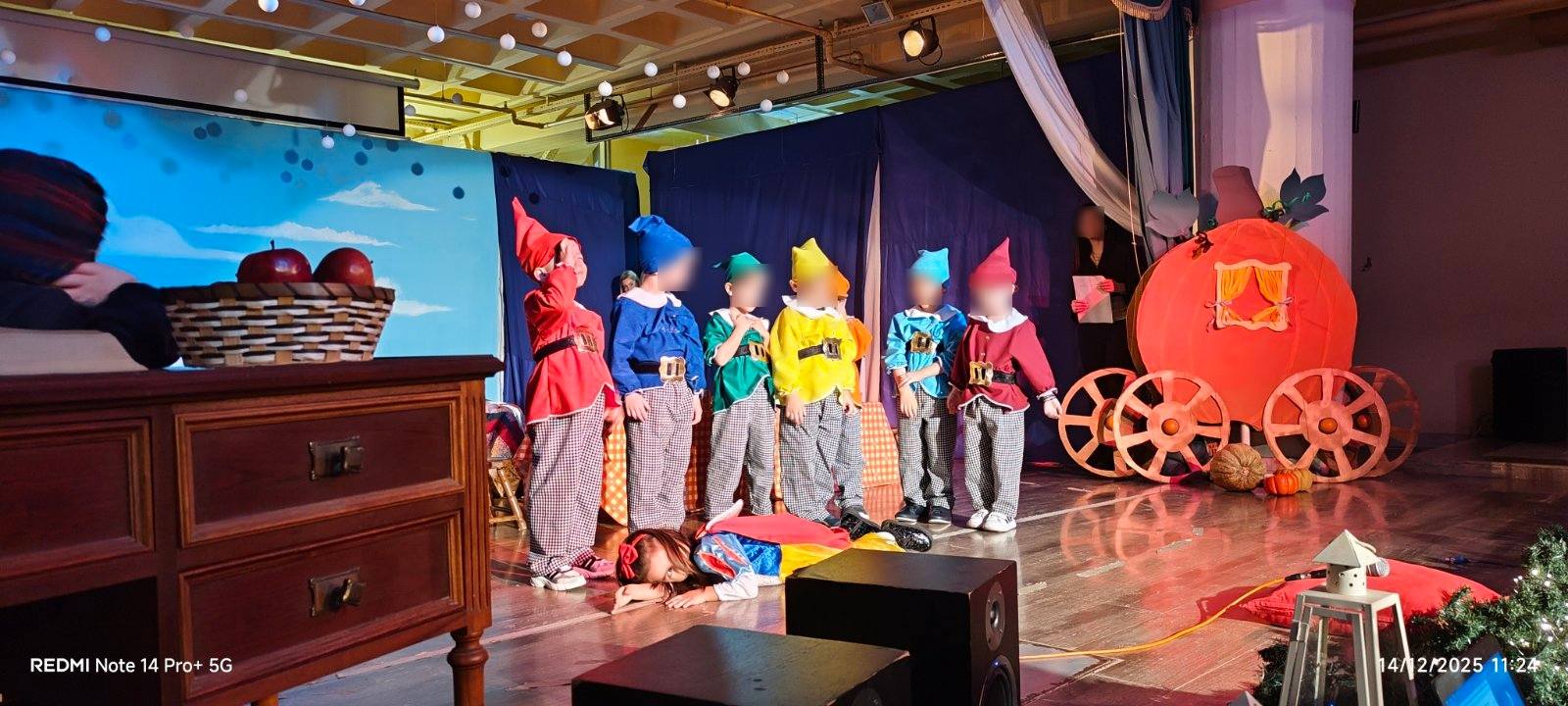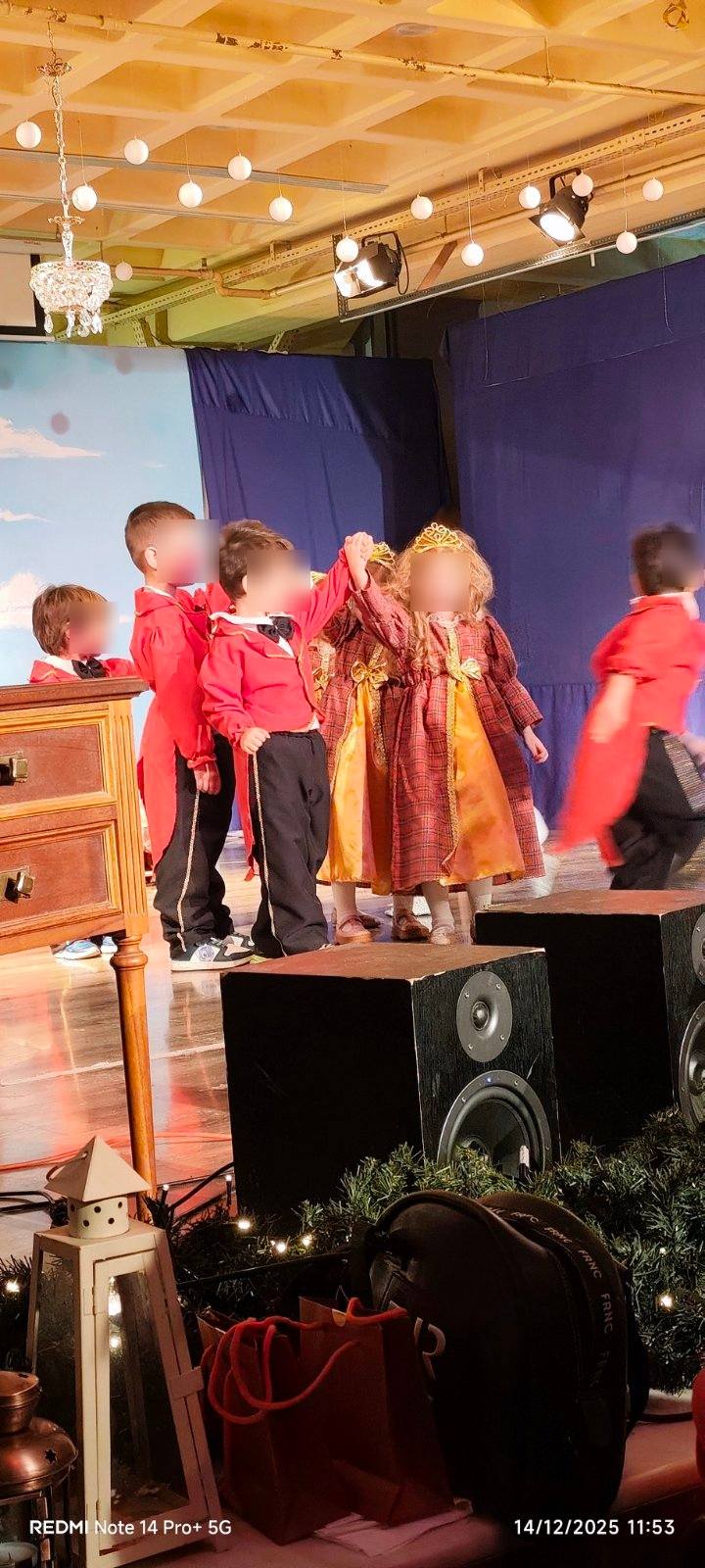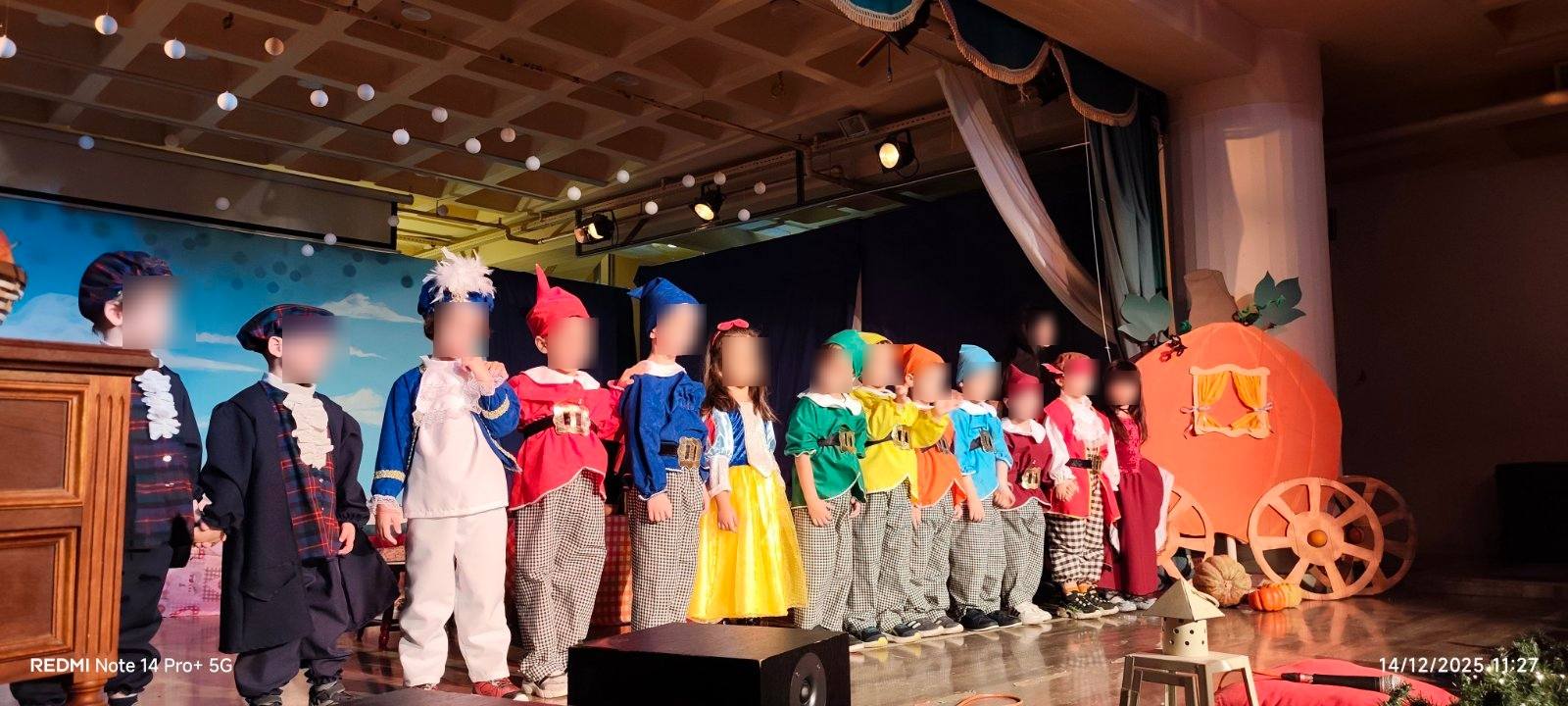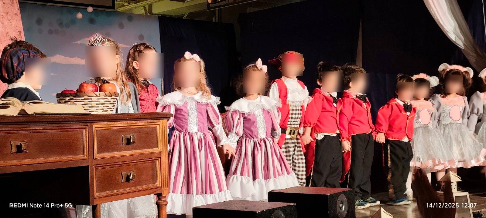 Οι μικροί μας πρωταγωνιστές με κέφι, φαντασία και αθωότητα ζωντάνεψαν τους παραμυθένιους ήρωες των αγαπημένων παραμυθιών των Αδερφών Γκριμ και μας ταξίδεψαν σ’ ένα όμορφο κόσμο αξιών, γεμίζοντας τη σκηνή χρώματα, μουσική και χαρούμενες παιδικές φωνές, προοιμιάζοντας τη χαρούμενη χριστουγεννιάτικη ατμόσφαιρα του Δωδεκαημέρου.