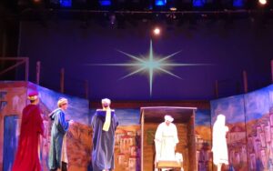 Η ιστορία που εδώ και 2000 χρόνια συν- κινεί και καλεί όλους μας να προσ- έλθουμε στο θαυμαστό γεγονός της θείας γεννήσεως αναπαραστάθηκε ενώπιον των μαθητριών και μαθητών του γυμνασίου μας.